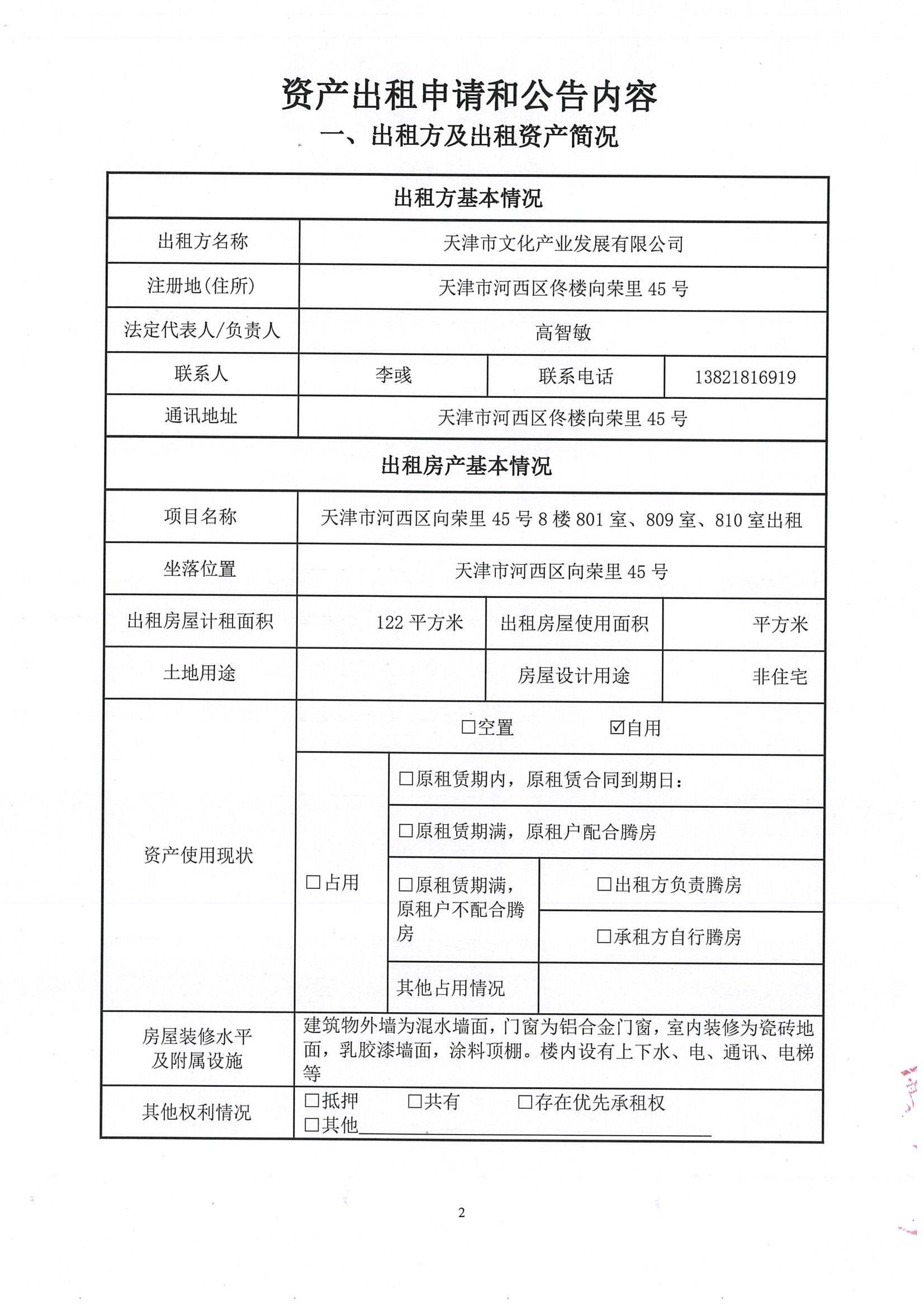 天津市河西區(qū)向榮里45號8樓801室、809室、810室出租(122平米)